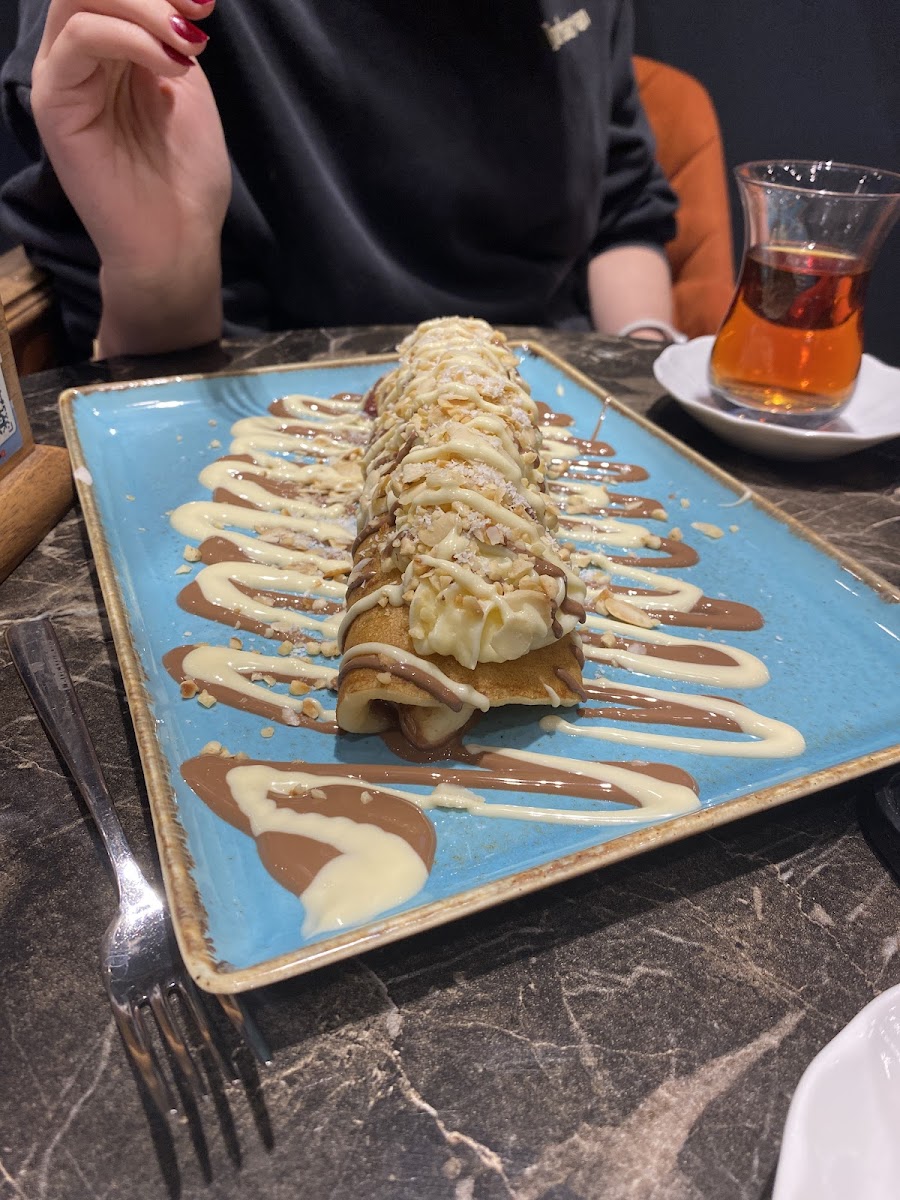The cafe's atmosphere is warm and inviting, ideal for casual meetings or a quiet afternoon with friends. Customers have praised the ambiance, calling it “acayi̇p zevkli tasarlanmiş” and a place of “sakinlik,” which translates to tranquility—fitting for a place that encourages leisure and indulgence.